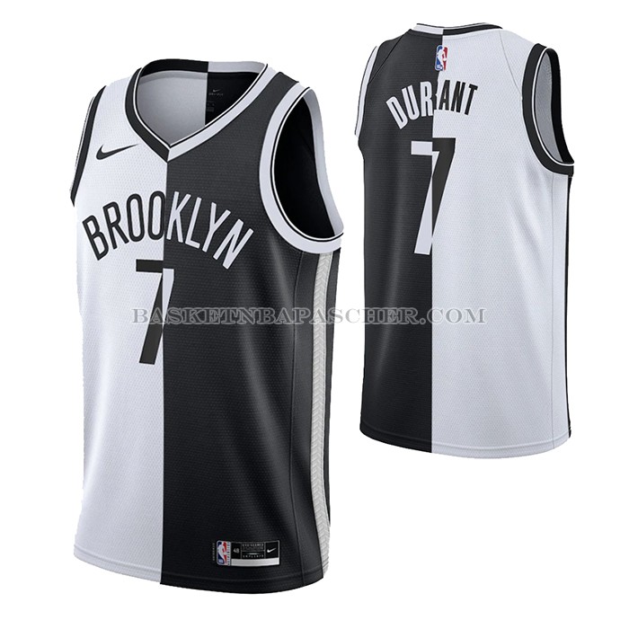 Maillot Brooklyn Nets Kevin Durant NO 7 Split Noir Blanc