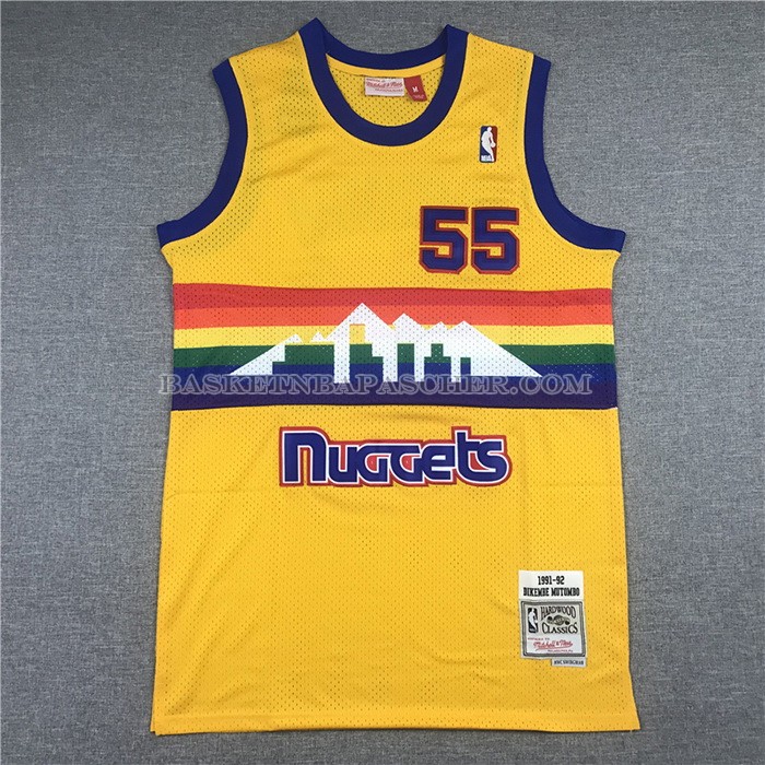 • Maillot Denver Nuggets Dikembe Mutombo NO 55 Mitchell & Ness 1991-92 Jaune