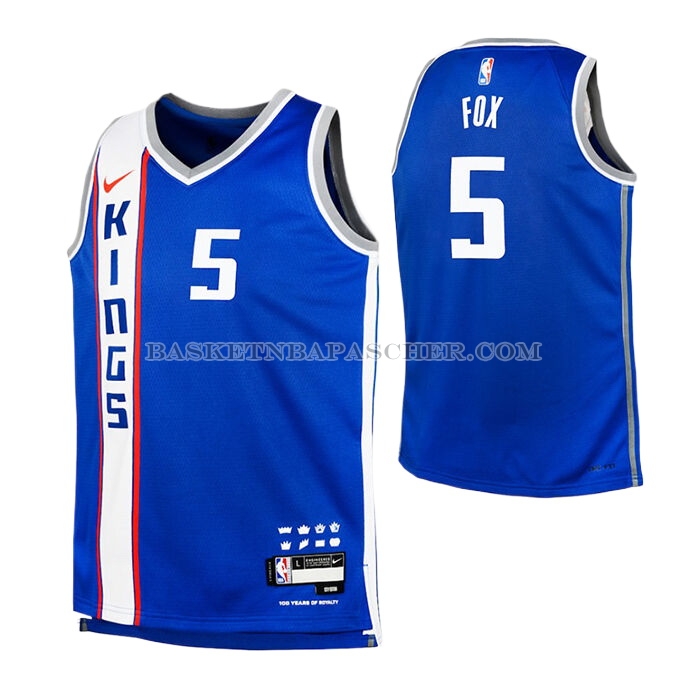 Maillot Enfant Sacramento Kings De'aaron Fox NO 5 2023-24 Ville Bleu
