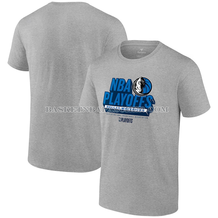 Maillot Manche Courte Dallas Mavericks 2024 NBA Playoffs Gris