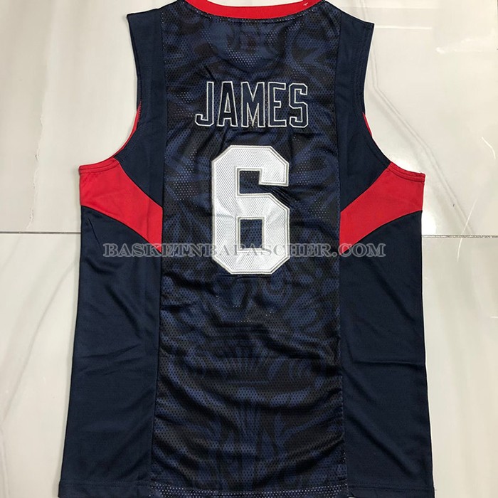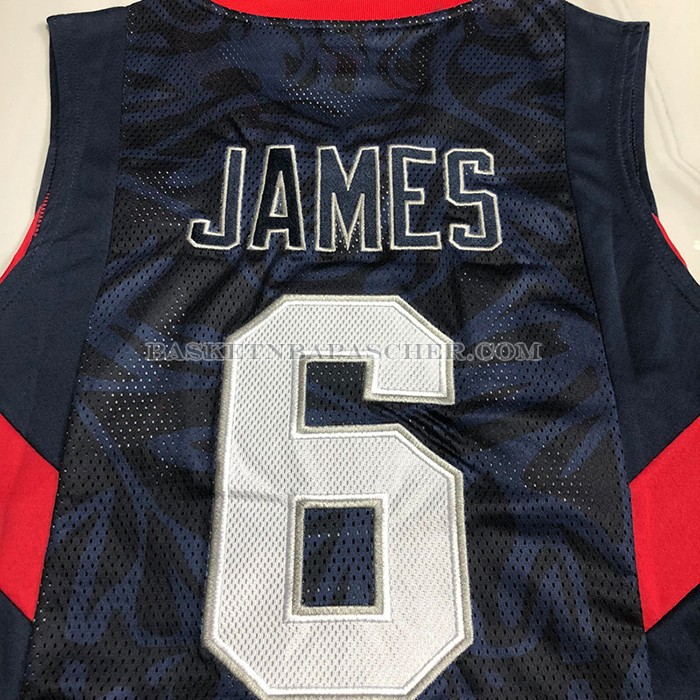 Maillot USA 2008 LeBron James NO 6 Bleu